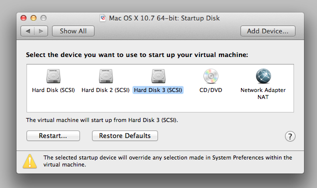 To boot back to my middleman OSX, I would have to go back and change the OS device label back to 10.7